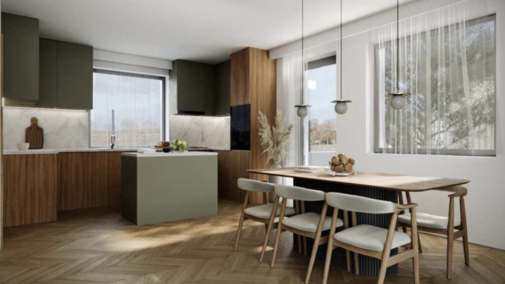 • Heizung/Kühlung: modernes Wärmepumpensystem mit Fußbodenheizung, optional mit Klimaanlage/Gebläsekonvektoren