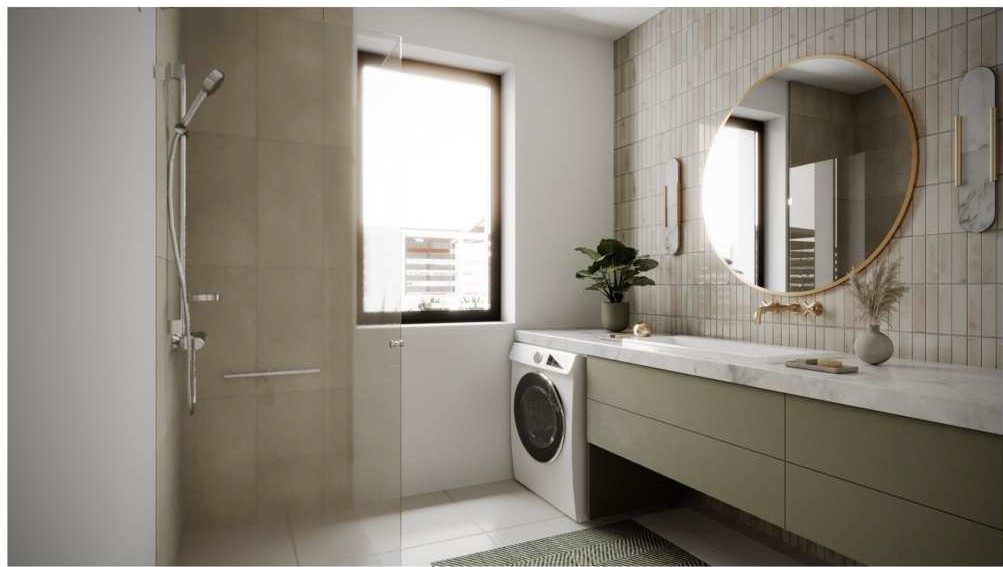 • Hochwertige Kalt- und Warmbeläge, Sanitäranlagen, Fenster und Türen (dreischichtige Wärmedämmverglasung, wärmebrückenfreie Konstruktion) nach Geschmack des Kunden: im Kaufpreis enthalten