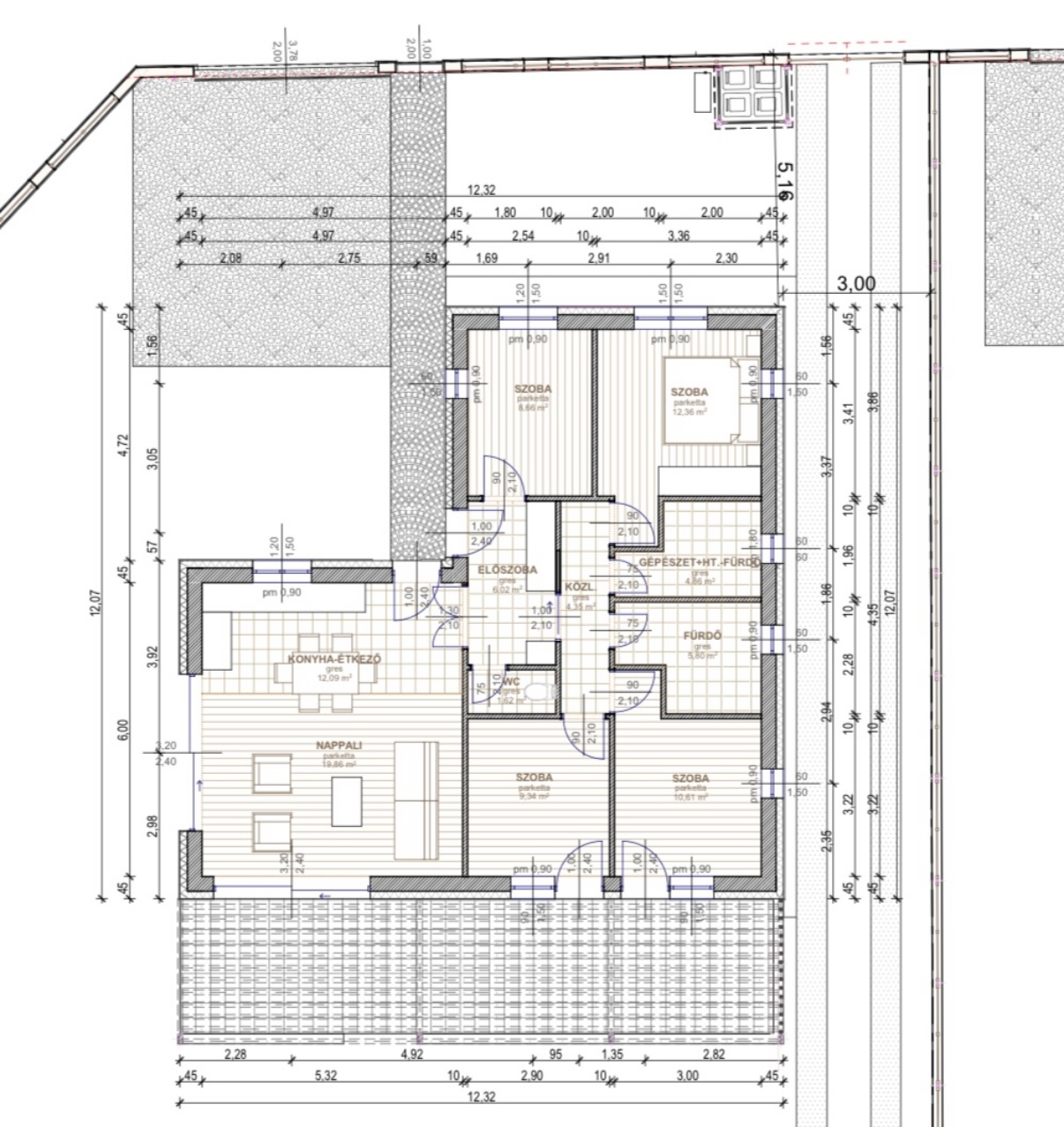 • Classic brick construction: 30 cm Porotherm masonry