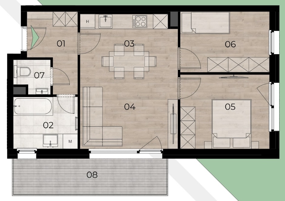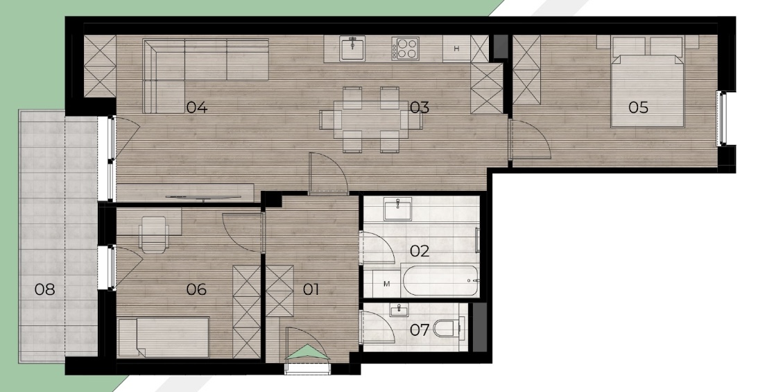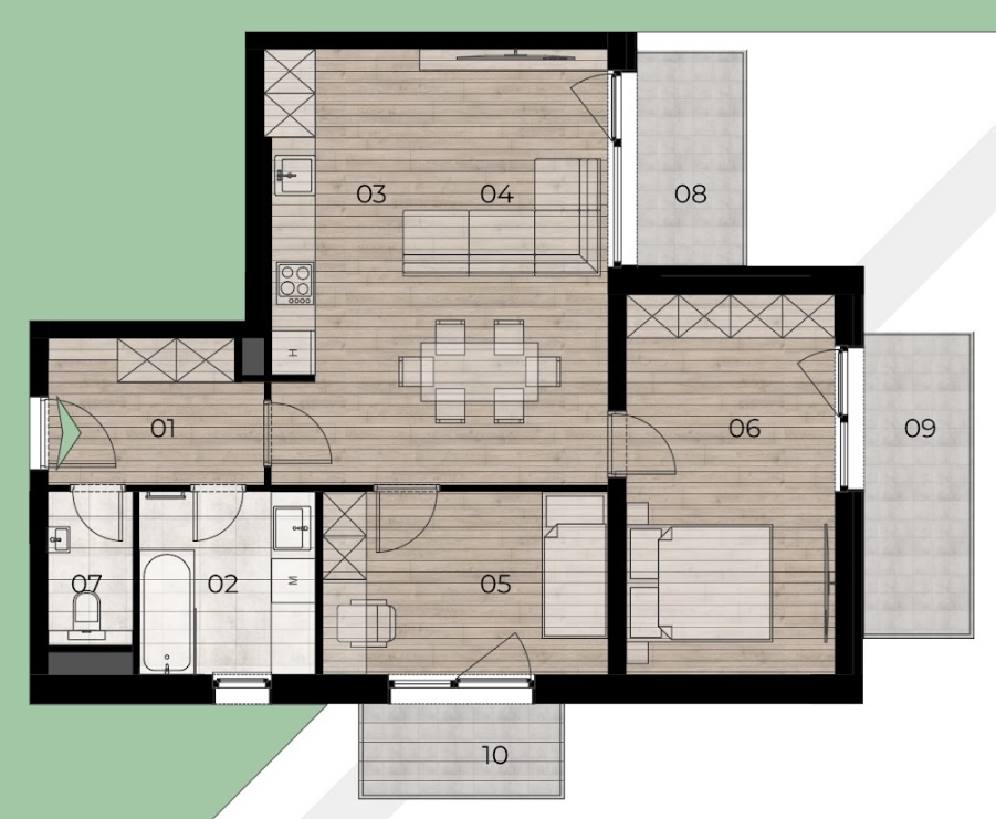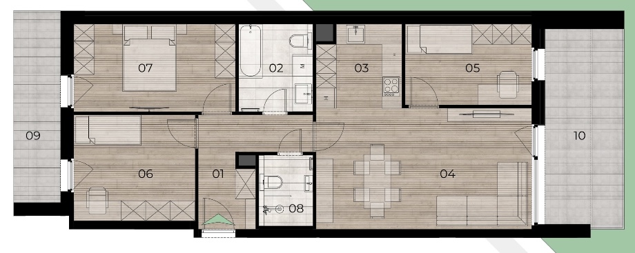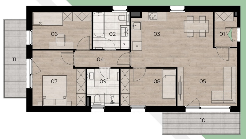 • Minden lakáshoz tartozik erkély, loggia vagy terasz.
