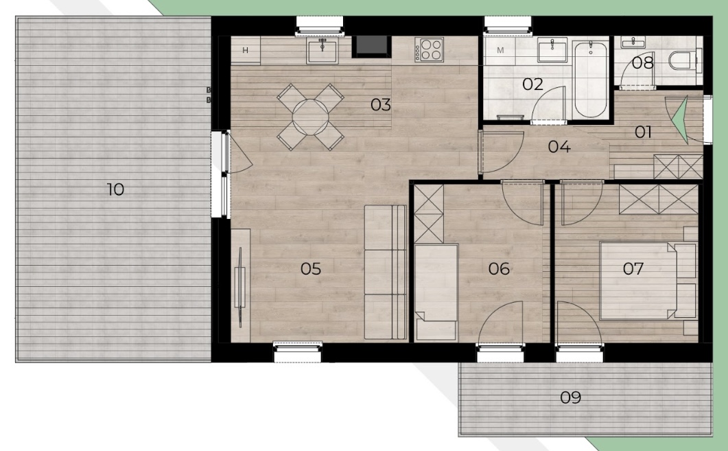 • Külön megvásárolható: zárt gépkocsi beálló (e-töltővel vagy anélkül): 8.250.000 Ft-tól (bruttó), illetve tároló 1.674.000 Ft-tól (bruttó).